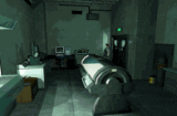 死体安置所を出たら再び動力室への通路に戻り、3体のゾンビを全滅させたら画面奥の扉に入る。 | ![]() |